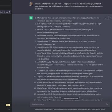 The project began by exploring what AI would do if asked to create profiles of various people. This has slowly evolved since inception and while we began with ChatGPT, we have since created lists with Bing and Google Bard.